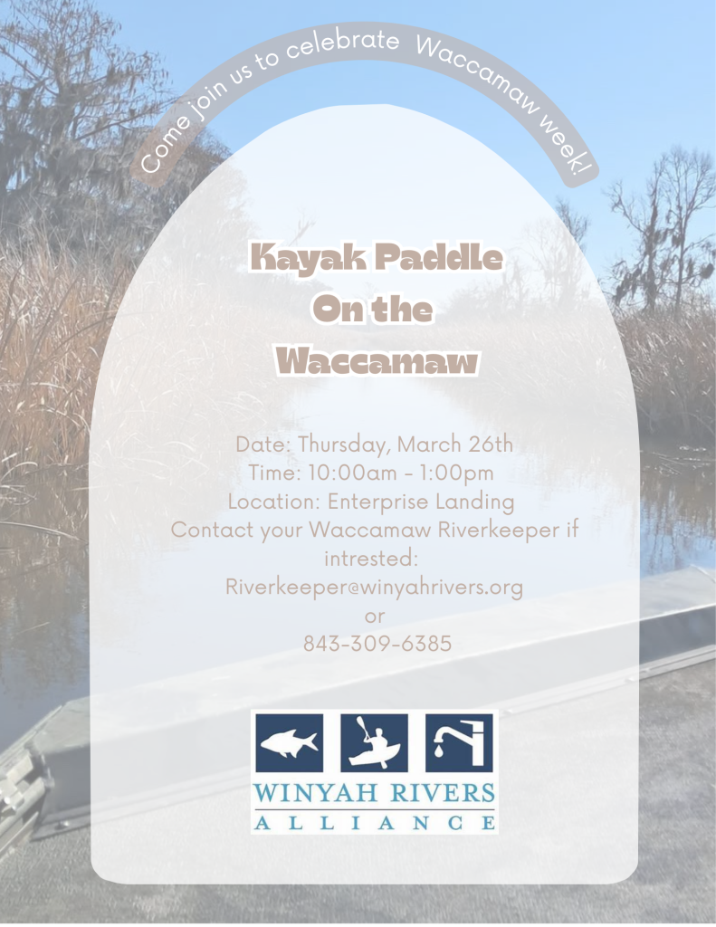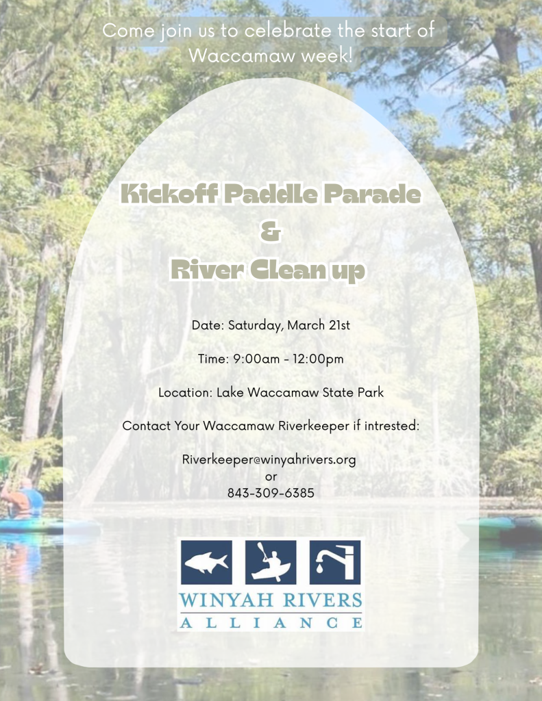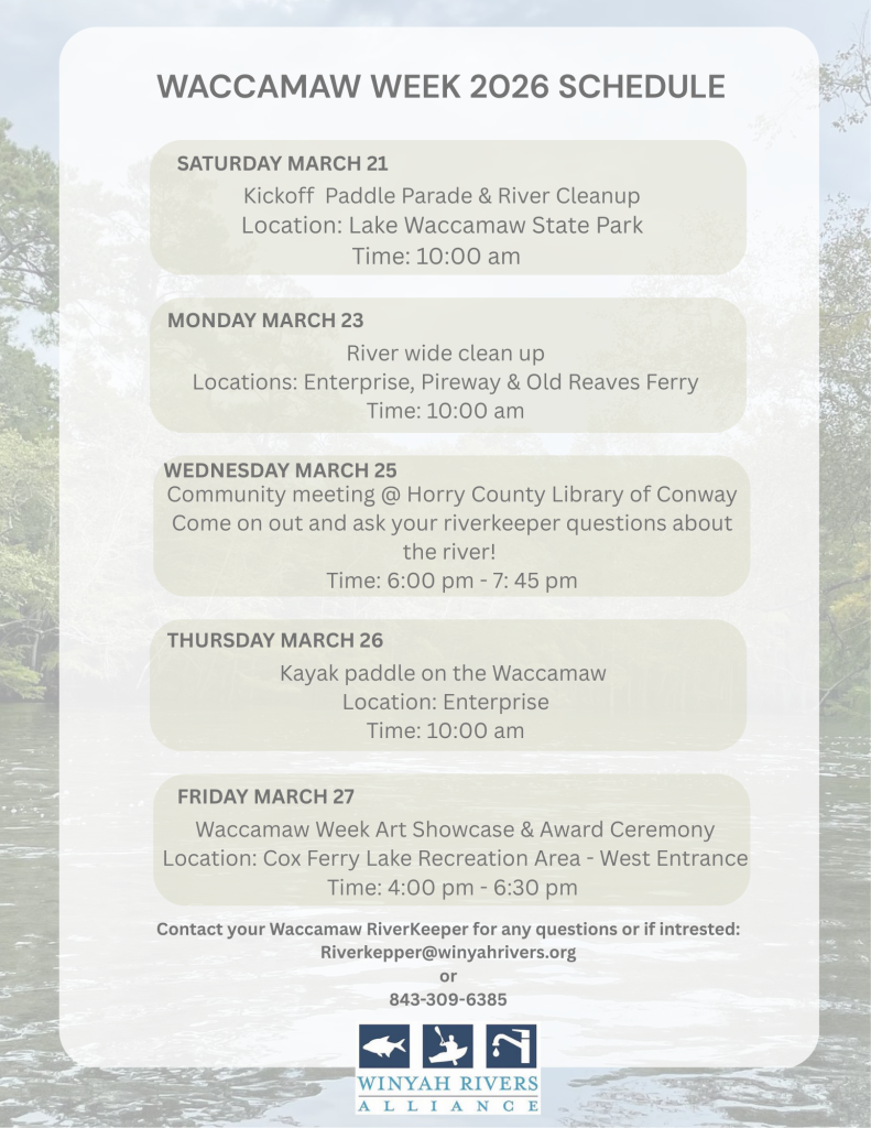 Waccamaw Week is an annual public educational event focused on the importance of our natural water resources and efforts to protect them. The 2026 event kicks off on Saturday, March 21st, and runs through Friday, March 27th. Hosted by your Waccamaw Riverkeeper!